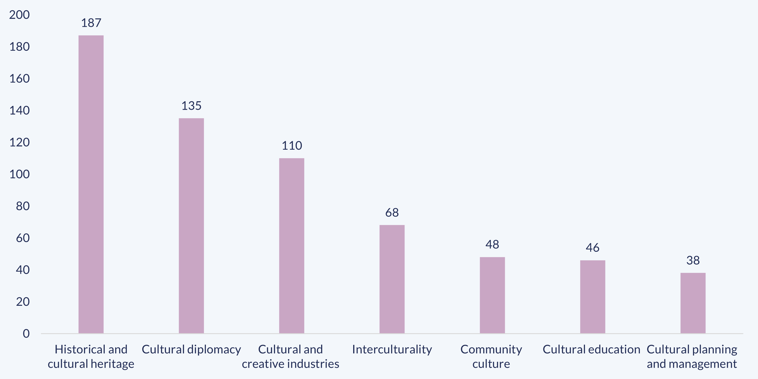 Thematic categories addressed by Bilateral SSC initiatives on culture. 2007-2023.